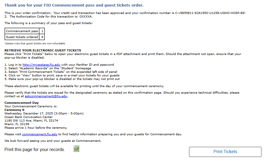 Ordering Commencement Tickets