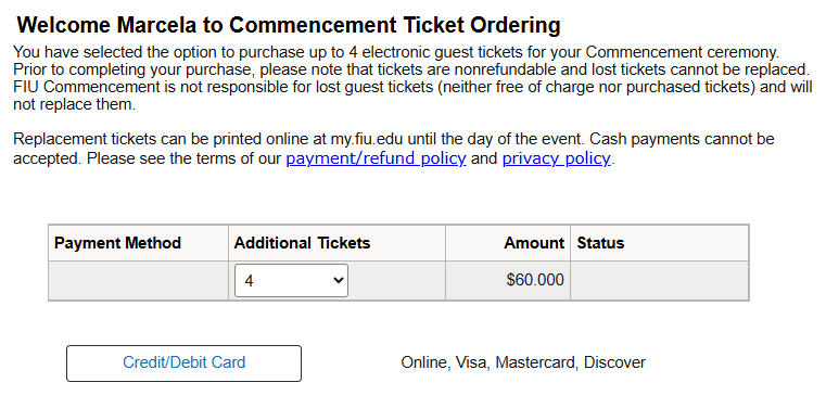 After confirming your attendance, you can claim and purchase your guest tickets. Graduates may claim up to four tickets for $15 each.